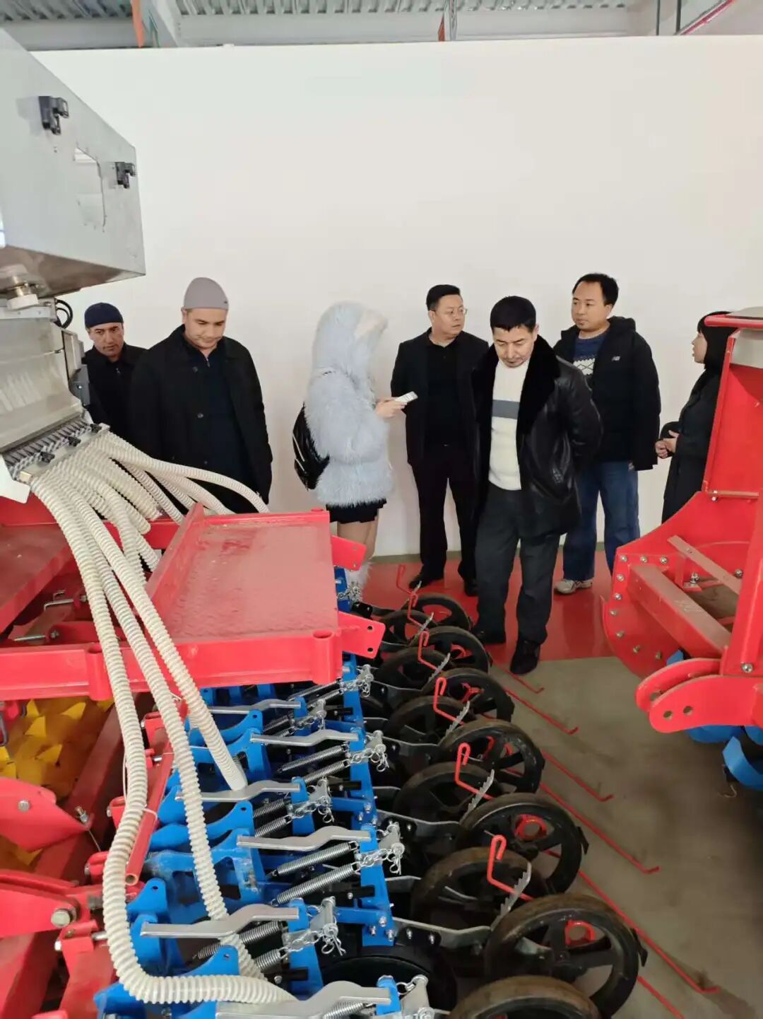在產(chǎn)品展廳,亞澳農(nóng)機(jī)負(fù)責(zé)外貿(mào)的時(shí)馳經(jīng)理詳細(xì)介紹了公司的核心技術(shù)與產(chǎn)品優(yōu)勢(shì)。針對(duì)代表團(tuán)關(guān)注的氣吸式播種機(jī),重點(diǎn)演示了其核心優(yōu)勢(shì):搭載進(jìn)口指夾式排種器,播種精度高達(dá)95%以上,遠(yuǎn)超國(guó)家標(biāo)準(zhǔn);創(chuàng)新采用梯堵裝置等專利技術(shù),可實(shí)現(xiàn)旋耕、整地、播種、施肥一體化作業(yè),適配干旱與黏濕等多種土壤環(huán)境,且能根據(jù)需求定制雙苗帶機(jī)型,完全契合烏茲別克斯坦的棉花種植需求?!拔覀兊漠a(chǎn)品在國(guó)內(nèi)小麥、玉米主產(chǎn)區(qū)可實(shí)現(xiàn)畝均增產(chǎn)10%-15%,作業(yè)成本降低30%以上,相信在烏茲別克斯坦也能發(fā)揮同樣的效益?!睍r(shí)馳經(jīng)理的介紹讓代表團(tuán)成員頻頻點(diǎn)頭。
