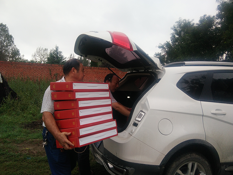 淫雨霏霏,在國慶、中秋雙節(jié)來臨之前,2017年9月25日下午,亞澳南陽農(nóng)機(jī)有限公司總經(jīng)理助理郭靖懷著滿滿的熱情與關(guān)懷,帶著月餅禮盒,再次來到大河屯鎮(zhèn)申沖村開展扶貧慰問工作。